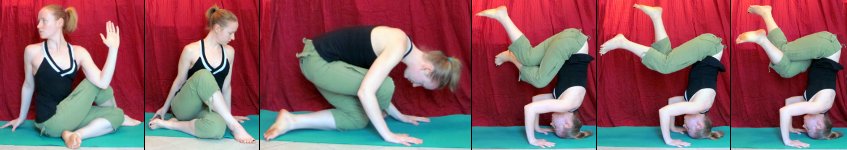 Come into tripod headstand with the legs crossed, and switch the cross of the legs. (click for larger image)